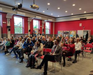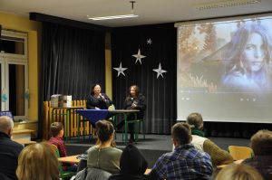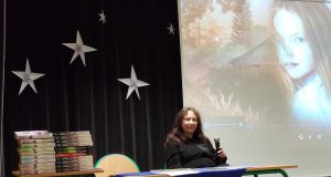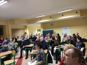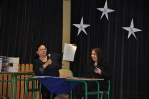 Wywiadowi z autorką, który przeprowadziła Bożena Szpadzik – dyrektor gminnej biblioteki, przysłuchiwała się licznie zgromadzona publiczność, w tym wójt Andrzej Chruścicki i przewodnicząca Rady Gminy Magdalena Dudzińska-Florczyk.