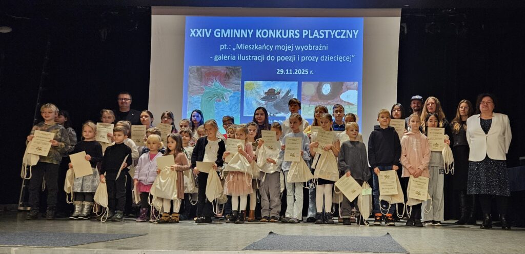 W sobotę 29 listopada 2025 r. w sali koncertowej w Kolbudach zebrali się laureaci XXIV Gminnego Konkursu Plastycznego: „Mieszkańcy mojej wyobraźni – galeria ilustracji do poezji i prozy dziecięcej”, organizowanego corocznie przez Gminną Bibliotekę Publiczną.